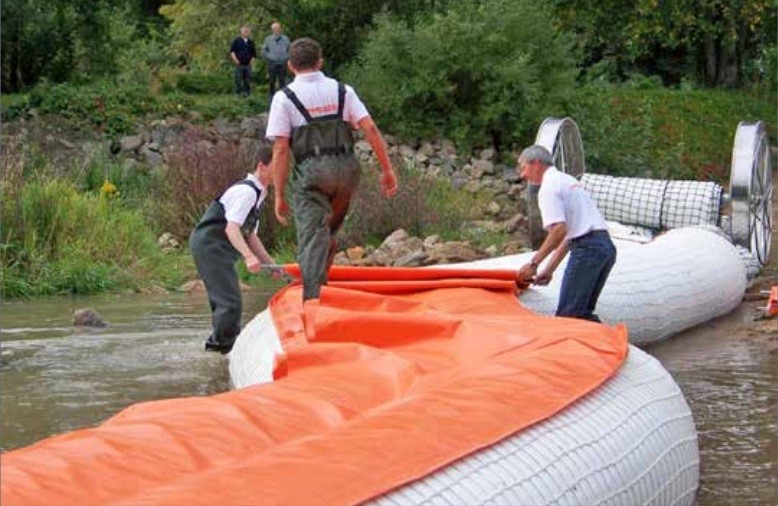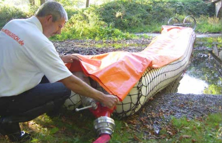 De mobiele dijk kan direct worden aangesloten op een pomp en gevuld worden met water uit rivieren of andere bronnen welke voor overstromingsgevaar zorgen. 20 minuten later word het meeste water al tegengehouden door de slangen.